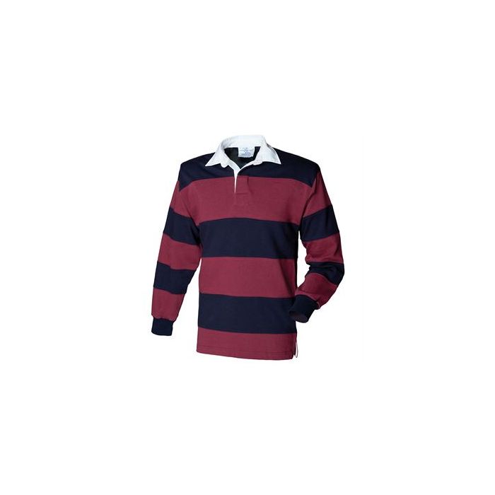 - Sewn Stripe Rugby in heavy jersey.