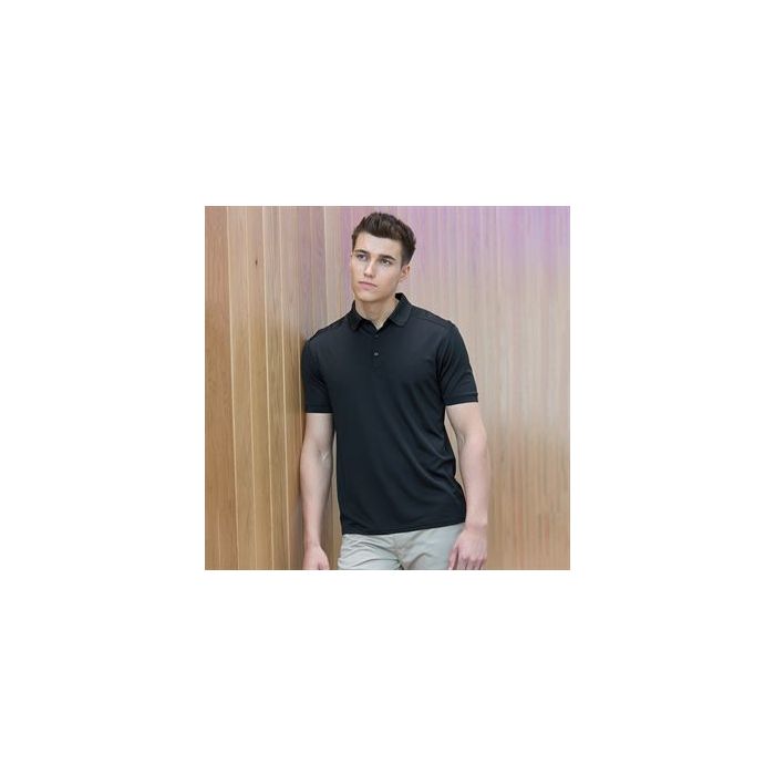 - Modern fit wicking men's polo shirt with added stretch.