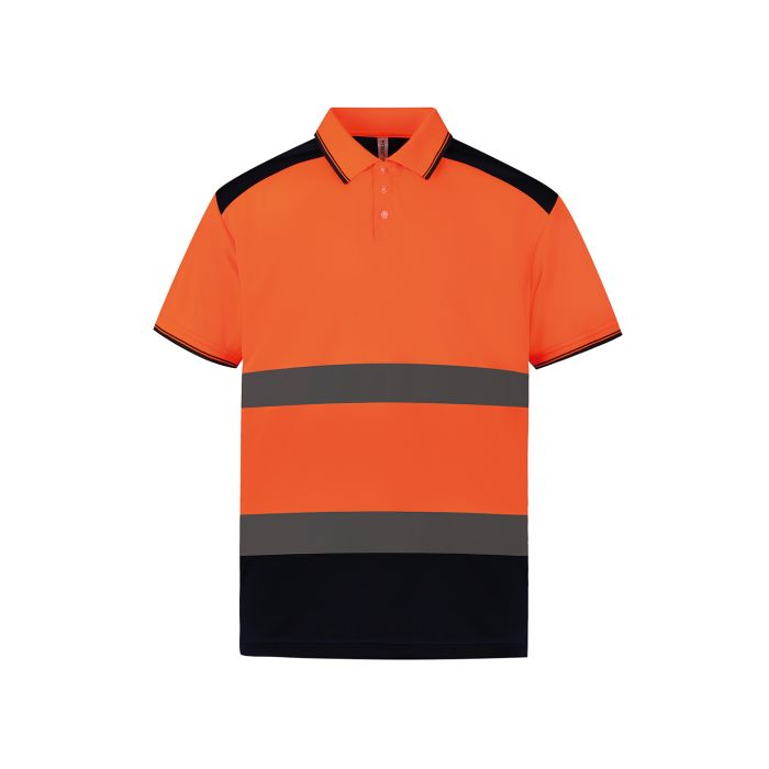 Conform to ENISO 20471 Class 2 and Orange/Navy is also RIS-3279-TOM Railway use certified. Two extra wide retro-reflective tapes around body. Made of Aircool breathable and quick-dry soft and skin-friendly Birdseye fabric. Great flexibility and stretch with brilliant shape retention. Nice navy contrast on the shoulders, collar, cuffs and hem. Three button placket. Side vents with reinforced stitches. Tag free.