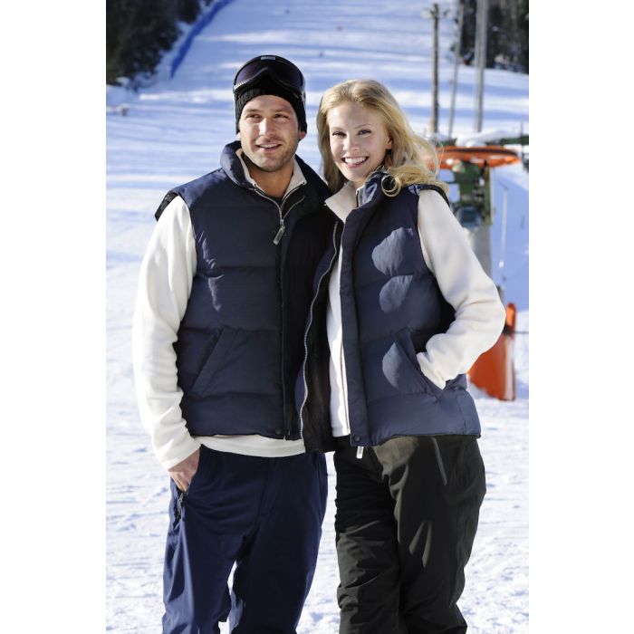 Padded vest with luxurious feel inner padding. Pockets with zippers and polyester tricot lining. Zipper and press studs in front.
