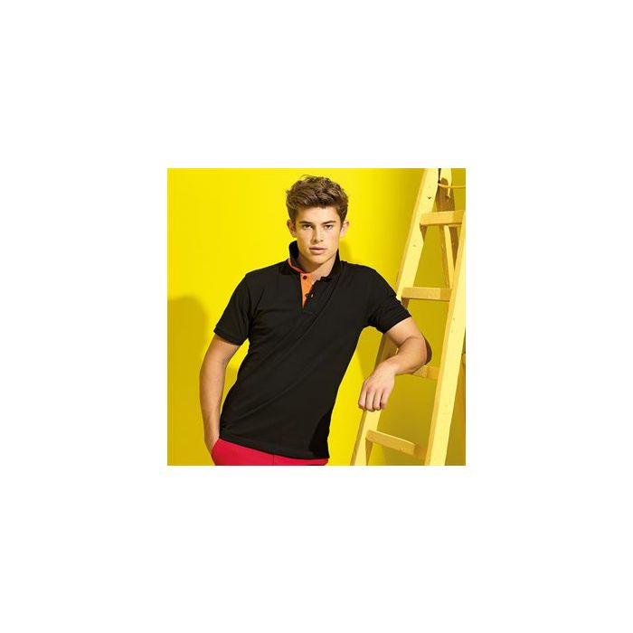 Add a stylish note to your look with this polo. The colour contrasting trim accents adds a fun and vibrant twist to the classic polo, making you stand out from the street to the office.Fabric100% Ringspun combed cotton. Heather/Navy: 85% Ringspun cotton, 15% ViscoseWeight200gsm