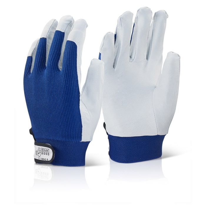 •Made of High quality soft grain leather with blue knitted cotton back and velcro cuff fastening.