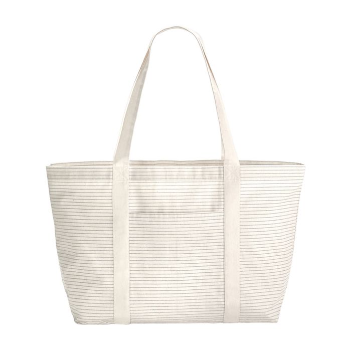 Dyed yarn. Large capacity. Deep front pocket. Can be carried by hand or over the shoulder. CutAway label for ease of rebranding.